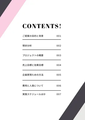 シャープなデザインの提案書テンプレートのテンプレートデザインを編集・オリジナルデザインが作成できます。