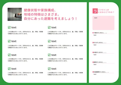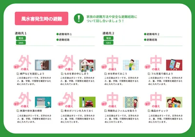 TOP > 行政 > 緑枠ベースの災害に備えたパンフレットデザイン
