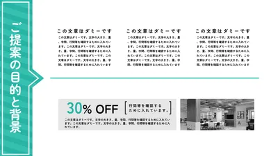 左上に緑の斜線デザインのシンプルなプレゼンテンプレ