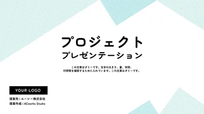 斜めストライプ背景に白いタイトルバックのプレゼンテーションテンプレート