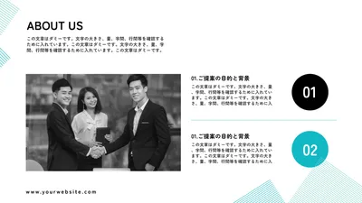 青緑色や白い背景にライン模様が入ったプレゼンテーションテンプレート