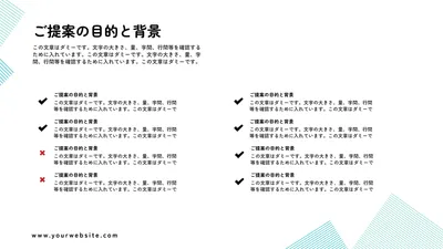 白背景に紺色の三角形のポイントと黒いラインのはいったプレゼンテーションテンプレート