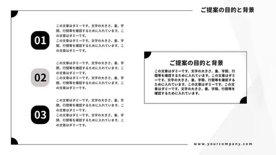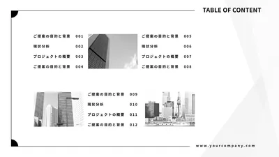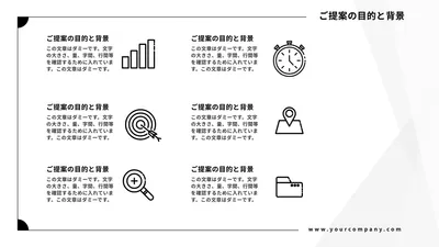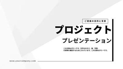 シンプルなモノクロのプレゼンテンプレートのテンプレートデザインを編集・オリジナルデザインが作成できます。