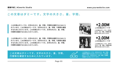 白抜き文字と長方形写真のシンプルなプレゼンテンプレ
