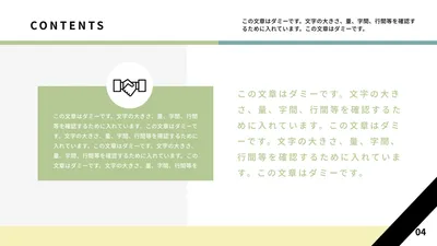 TOP > プレゼンテーション > 左上に緑の斜線デザインのシンプルなプレゼンテンプレ