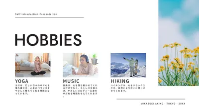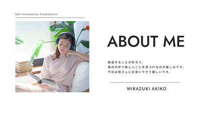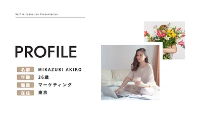 白抜き文字と長方形写真のシンプルなプレゼンテンプレ