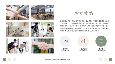 くすんだ緑カラーのシンプルなプレゼンテンプレ