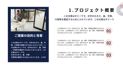 ネイビーとグレーのシックな新規事業のプレゼンテンプレ