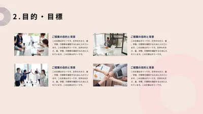 淡いピンクとグレーの半円デザインのプレゼンテンプレ