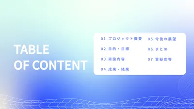 青背景に白抜き文字のプロジェクトプレゼン