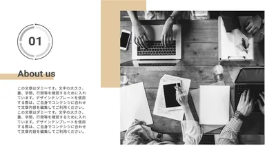 白背景に黒とベージュのラインの入ったプレゼンテーションテンプレート