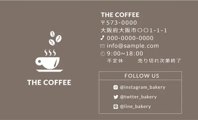 コーヒーイラストのショップカードのテンプレートデザインを編集・オリジナルデザインが作成できます。