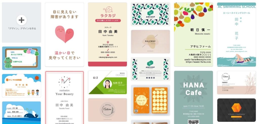 テンプレートを選び、社名や連絡先を編集するだけで、プロが作ったような名刺やチラシが完成します。印刷用のPDFデータも簡単に作成できるため、そのまま印刷会社に入稿可能です。
